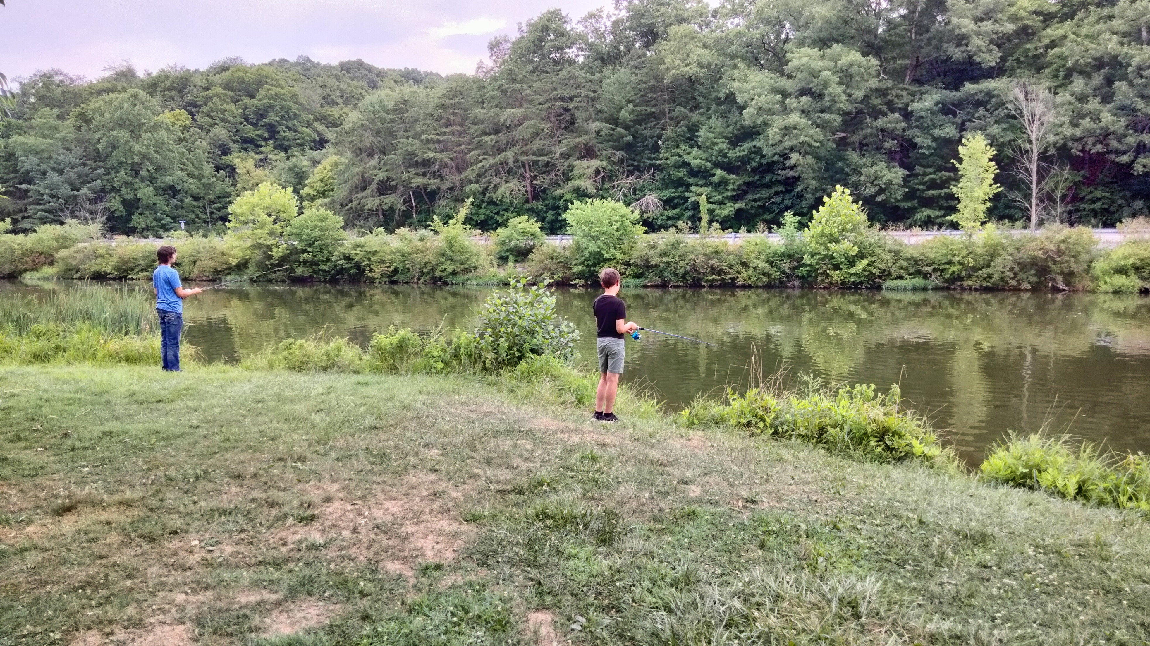 Saturday morning the troop cooked scrambled eggs and sausage. After dishes were done, the troop got ready to go fishing. After about two hours there was only one catch. So we all went back to camp. For lunch we had hotdogs, not much to say about them - they were pretty subpar. But there were carrots and onions with them. After lunch the troop prepared to go swimming. When we arived at the pool the scouts had a contest to see who could swim to retrieve a sink toy in the fastest time, and the two losers had to do do the dishes for dinner that night. But dinner had no dishes, because after rain killed our fun at the pool we had foil pouch meals for dinner. After dinner had been burnt and eaten there was a non-religious-specific service presented by one of the scouts for his Communications merit badge. All who attended the religious service were treated to freezy-pops when it was over. That was the last thing we did on Saturday.