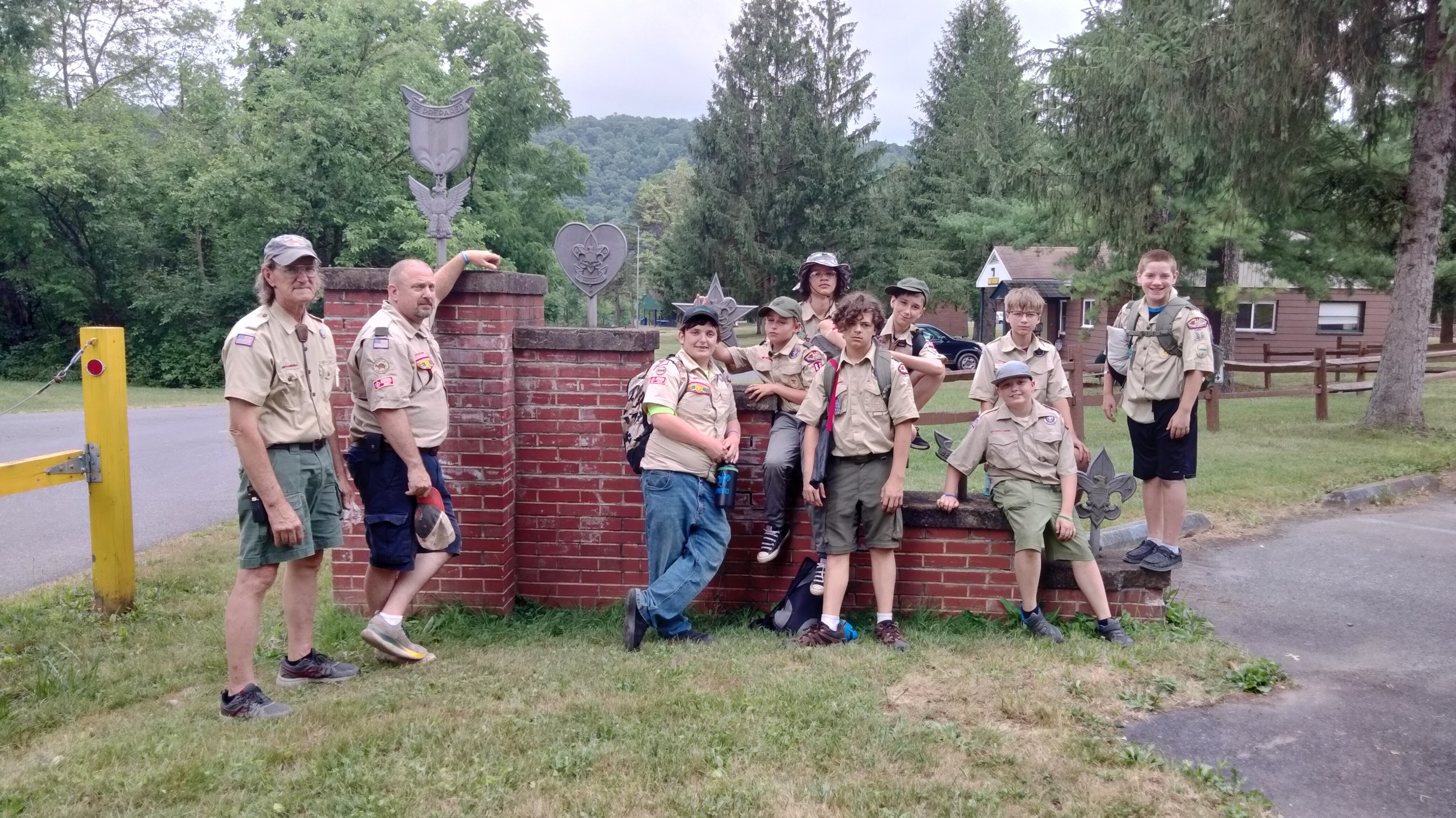 Over the week of time spent at Hidden Valley summer camp 2024 the scouts earned merit badges, participated in camp events, and enjoyed their time at the camp. The swim test had been cancled due to rain, and later on in the week heavy rain caused trees and branches to fall in some campsites while the camp was at dinner. Our troop won the trivia tournament with a whoping 8 points! We also placed second in the cardboard cannoe race. However, at the camp cookoff our troop's dish lost by a substantial margain. Some examples of the merit badges earned there were First Aid, swimming, fishing, camping, and chess. The scouts who attended helped the troop to earn the Baden Powell Award, which was awarded if the troop met speific requirements. The troop participated in a parade of colors, cardboard canoe race, cooking compitition, a chaple service, and raised the flags on the first morning of camp. The troop said dad jokes as their skit at the closing fire, and cooked teriaki chicken for the camp cook off.